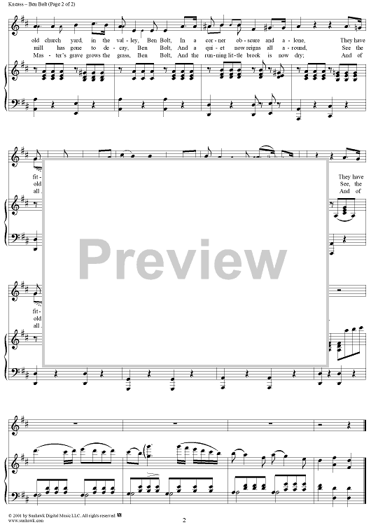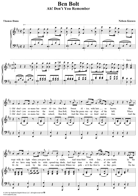 Digital Sheet Music for Ben Bolt by Nelson Kneass, Thomas Dunn English scored for Piano/Vocal; id:275669