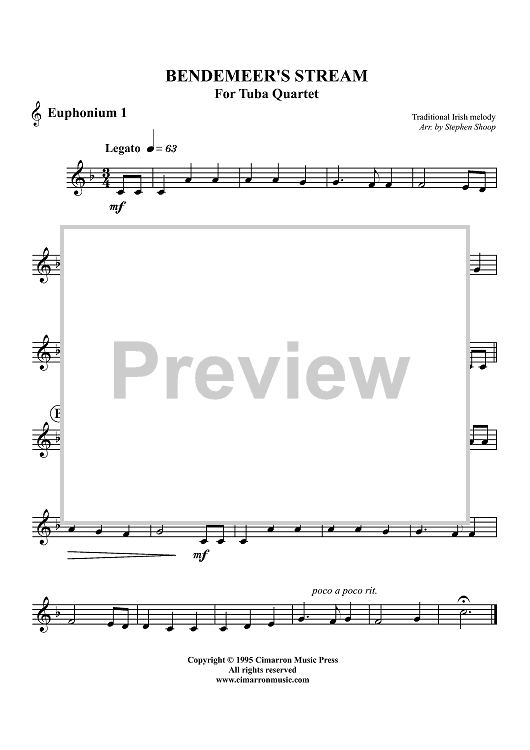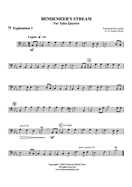 Digital Sheet Music for Bendemeer's Stream - Euphonium 1 BC/TC by Traditional Irish Melody, Stephen Shoop scored for Tuba Quartet; id:316116