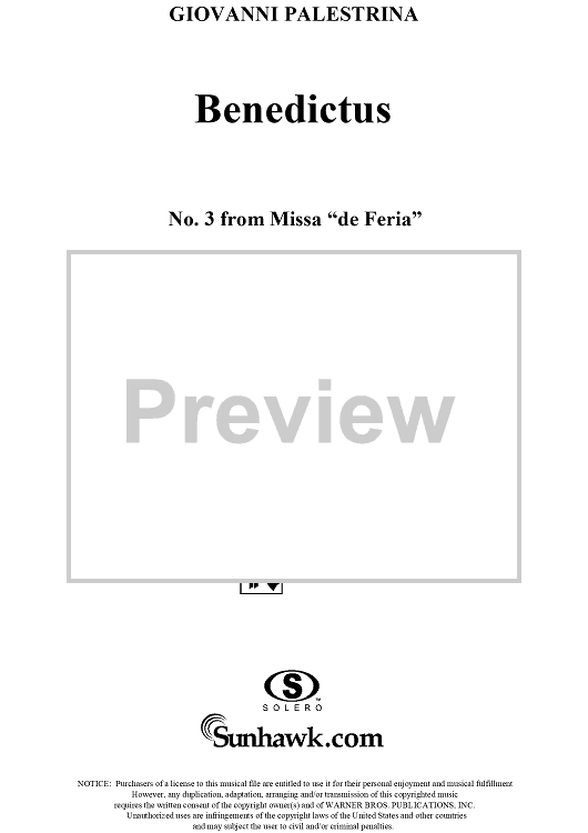 "Benedictus - No. 3 from Missa "de Feria"" Sheet Music by Giovanni Pierluigi da Palestrina