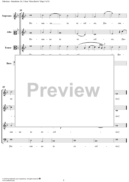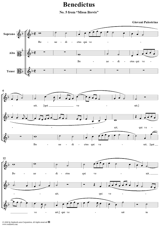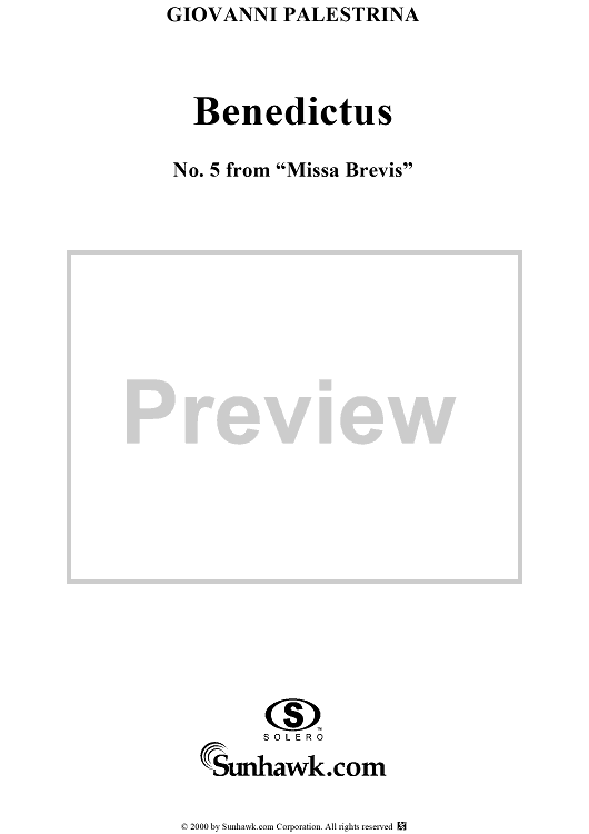 "Benedictus - No. 5 from Missa Brevis" Sheet Music by Giovanni Pierluigi da Palestrina