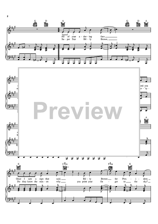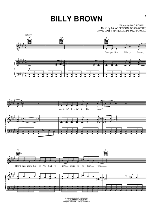 Digital Sheet Music for Billy Brown by Third Day, Mac Powell, Mark David Lee, Tai Anderson, Brad Avery, David Carr scored for Piano/Vocal/Chords; id:375226