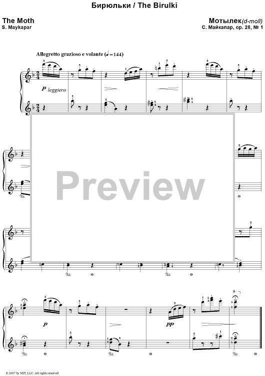 "Birulki. 12. The Moth (D Minor / d-moll)" Sheet Music by Samuel Maykapar