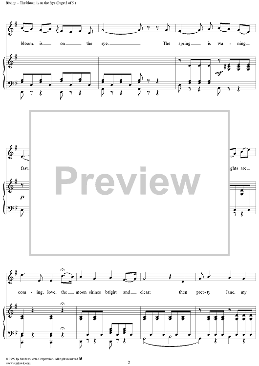 Digital Sheet Music for Bloom Is On The Rye, The (My Pretty Jane) by Henry Bishop, Edward Fitzball scored for Voice/Piano; id:270363