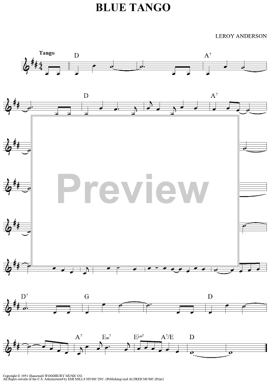 Digital Sheet Music for Blue Tango by Leroy Anderson scored for Lead Sheet; id:445166