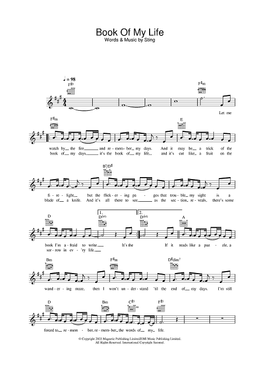 Digital Sheet Music for Book Of My Life by Sting scored for Lead Sheet; id:378186