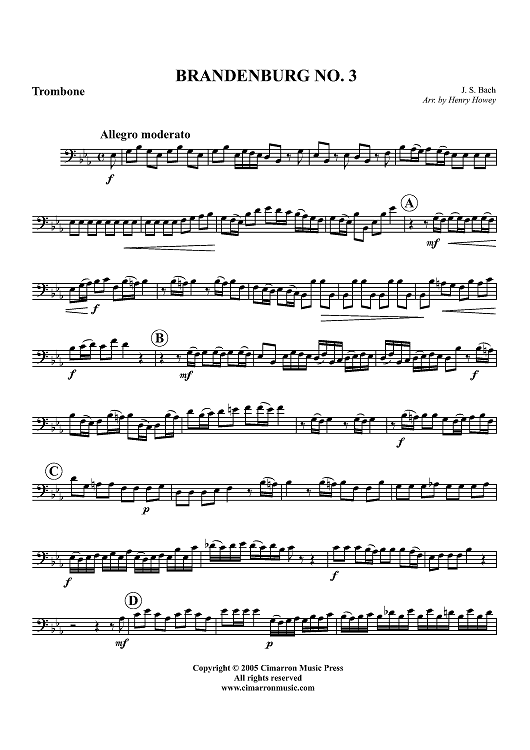 "Brandenburg No. 3 - Trombone" Sheet Music by Johann Sebastian Bach