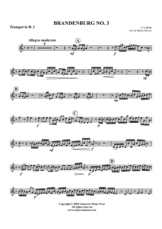 Digital Sheet Music for Brandenburg No. 3 - Trumpet 2 in B-flat by Henry Howey, Johann Sebastian Bach scored for Brass Quintet; id:321448