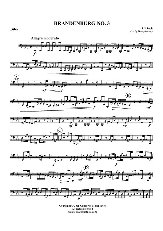 "Brandenburg No. 3 - Tuba" Sheet Music by Johann Sebastian Bach