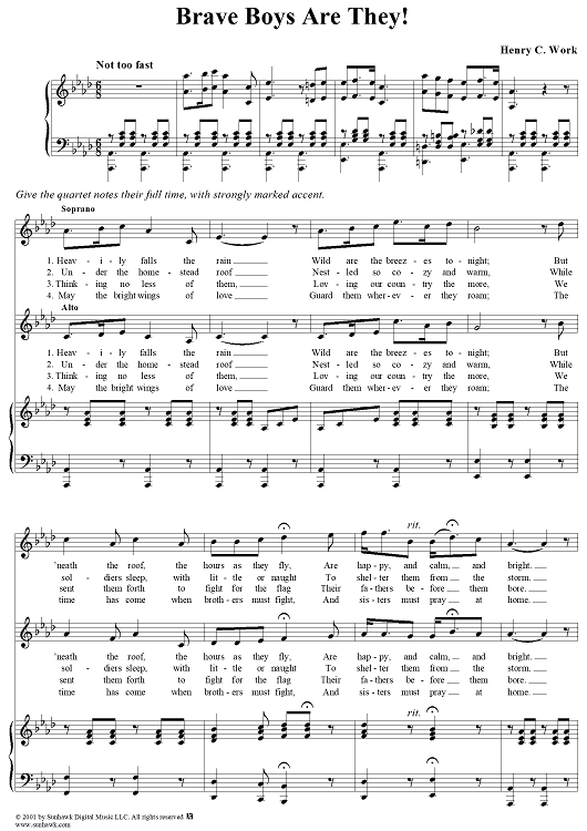 Digital Sheet Music for Brave Boys Are They! by Henry C. Work scored for Piano/Vocal; id:274500