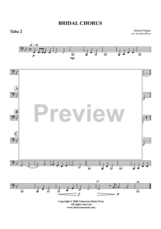 Digital Sheet Music for Bridal Chorus - Tuba 2 by Richard Wagner, Dan Oliver scored for Tuba Quartet; id:319661