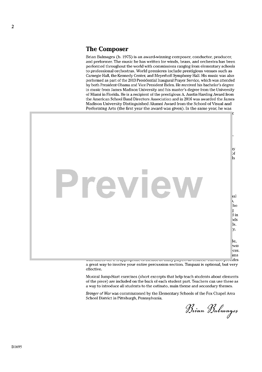 "Bringer of War (After Holst) - Score" Sheet Music by Brian Balmages