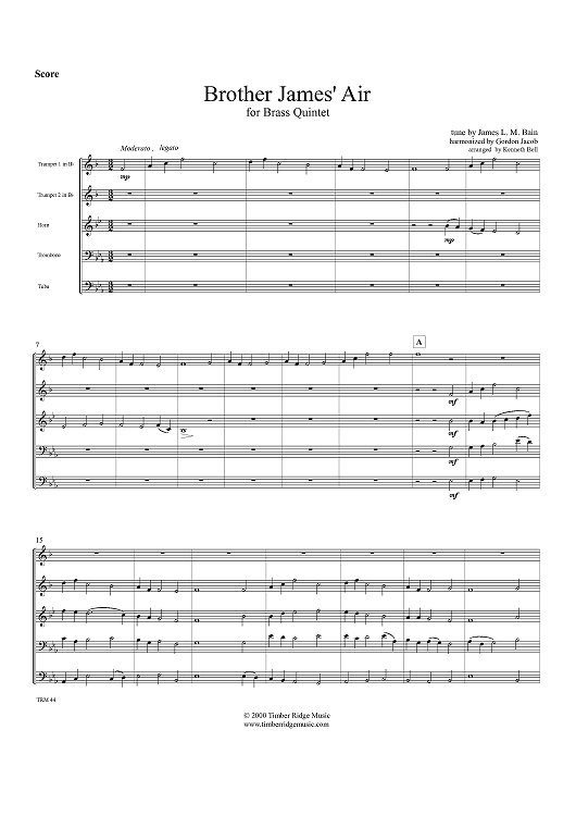 "Brother James' Air - Score" Sheet Music by James L. M. Bain