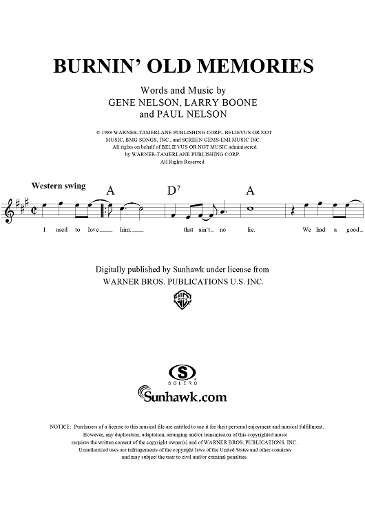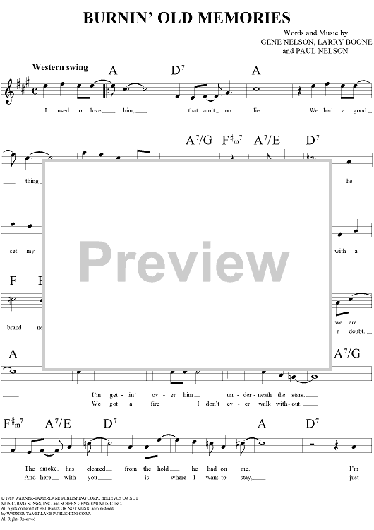 Digital Sheet Music for Burnin' Old Memories by Larry Boone, Gene Nelson, Paul Nelson, Kathy Mattea scored for Lead Sheet; id:120533