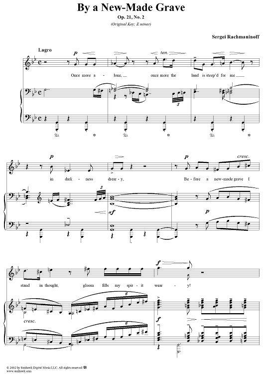 Digital Sheet Music for By a New-Made Grave by Sergei Rachmaninoff scored for Voice/Piano; id:255251
