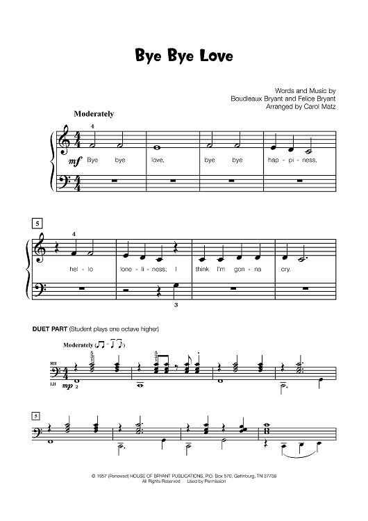 Digital Sheet Music for Bye Bye Love by Boudleaux Bryant, Felice Bryant, Carol Matz scored for Piano; id:451497