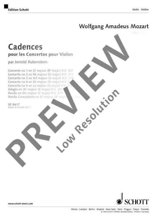 Digital Sheet Music for Cadences to the Violin Concertos by Wolfgang Amadeus Mozart, Jerrold Rubenstein scored for Violin; id:476491