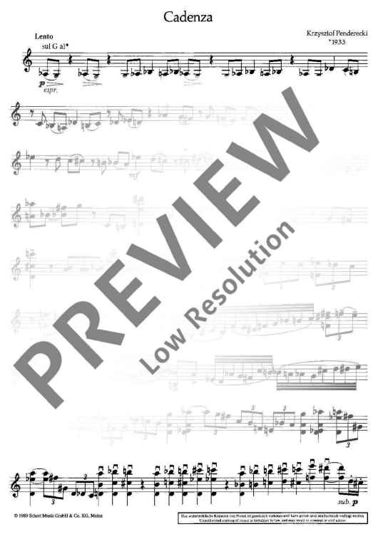 "Cadenza" Sheet Music by Krzysztof Penderecki