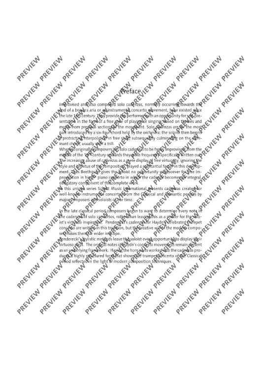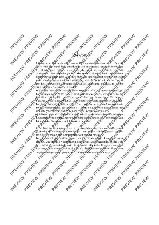 In the late classical period composers began to want to determine every note in the cadenzas of solo concertos, rather than leaving this as a matter for the soloist’s virtuoso inspiration. Penderecki’s cadenzas for Haydn’s celebrated trumpet concerto are written in this tradition, but the creative will of the modern composer makes them far wider in scope. Penderecki’s stylistic methods leave the soloist every opportunity to display their virtuoso skills. The original notes of Haydn’s concerto movements remain present as an underlying framework. Having the horn parts worked into the cadenzas produces a highly structured form that shows the trumpet concerto of the Classical period reflected in the light of modern composition techniques.