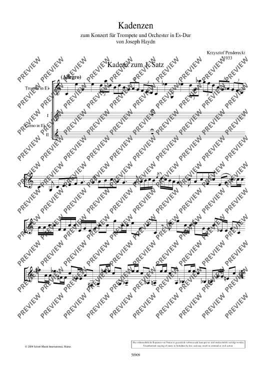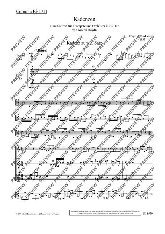 "Cadenzas in E flat major - Incl. 2 Accompanying Horn Parts" Sheet Music by Krzysztof Penderecki