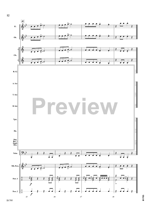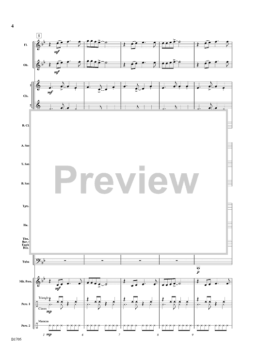 This fun and accessible piece captures the carefree feel of music playing on a Caribbean beach. All instruments take a turn playing syncopated melodies, supported by rhythmic ostinatos and energetic percussion parts. Great for teaching a variety of dynamics and articulations. Students will not want to hand this one back in! (1:45)
