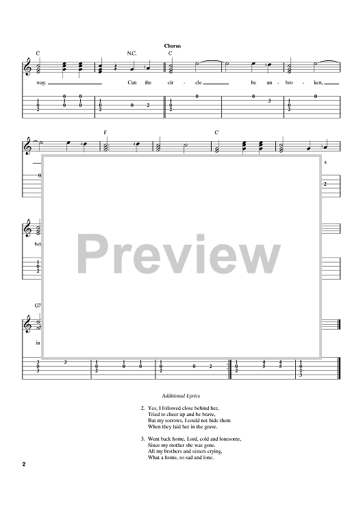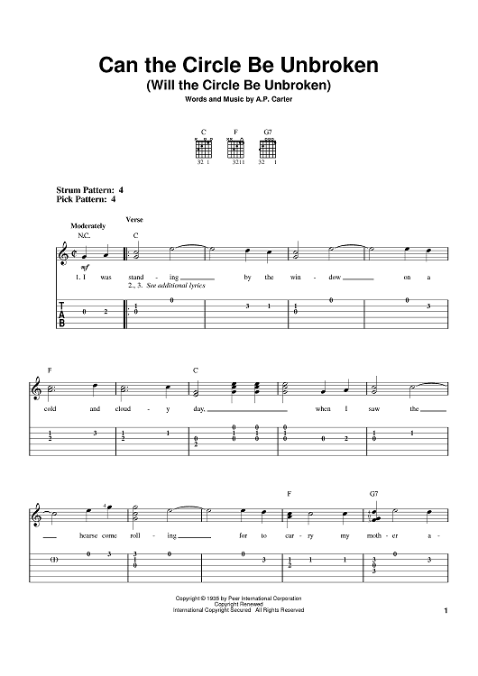 Digital Sheet Music for Can The Circle Be Unbroken (Will The Circle Be Unbroken) by Nitty Gritty Dirt Band, A. P. Carter scored for Easy Guitar Tab; id:392983
