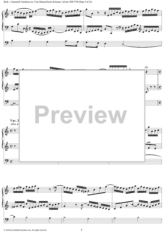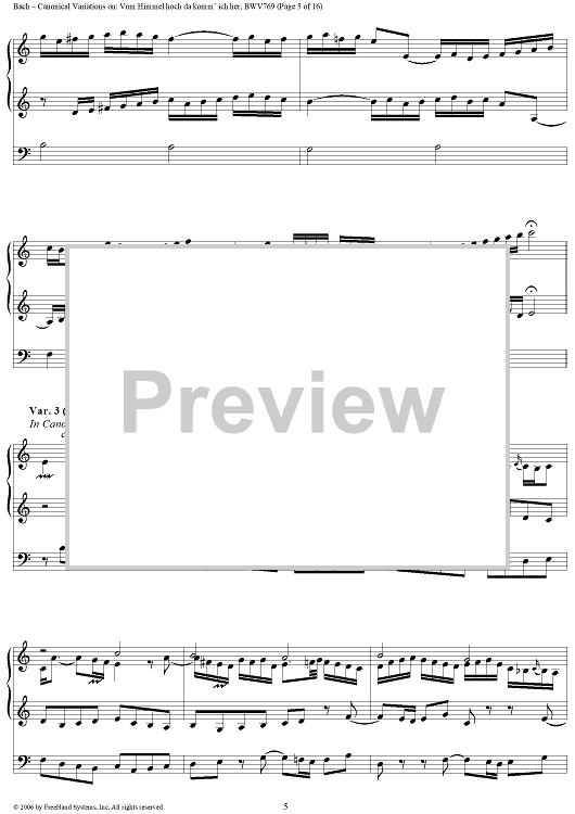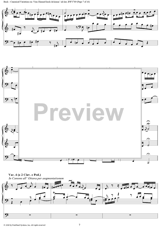 Digital Sheet Music for Canonical Variations on: Vom Himmel hoch da komm' ich her, BWV769 by Johann Sebastian Bach scored for Organ Solo; id:319363