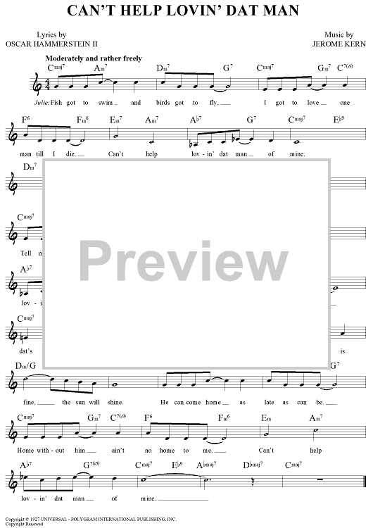 Digital Sheet Music for Can't Help Lovin' Dat Man by Jerome Kern, Oscar Hammerstein II scored for Lead Sheet; id:457073