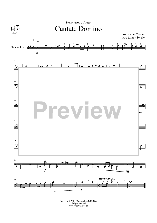 Digital Sheet Music for Cantate Domino - Euphonium by Hans Leo Hassler, Randy Snyder scored for Brass Quartet; id:410590