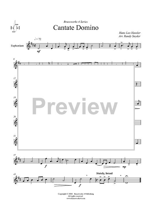Digital Sheet Music for Cantate Domino - Euphonium by Hans Leo Hassler, Randy Snyder scored for Brass Quartet; id:410592