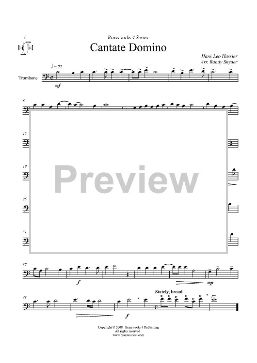 Digital Sheet Music for Cantate Domino - Trombone by Hans Leo Hassler, Randy Snyder scored for Brass Quartet; id:410589