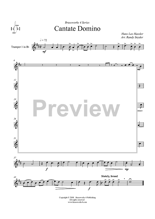 Digital Sheet Music for Cantate Domino - Trumpet in B-flat by Hans Leo Hassler, Randy Snyder scored for Brass Quartet; id:410587