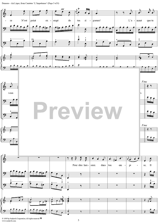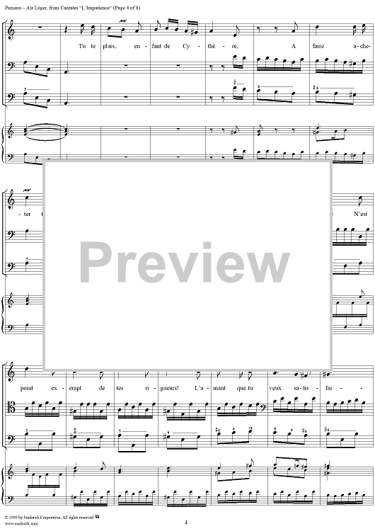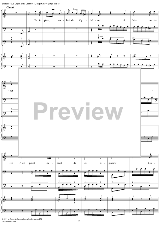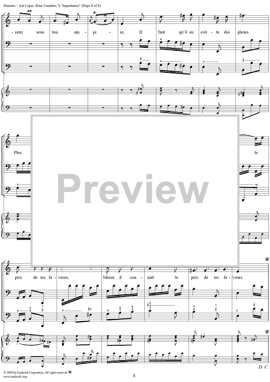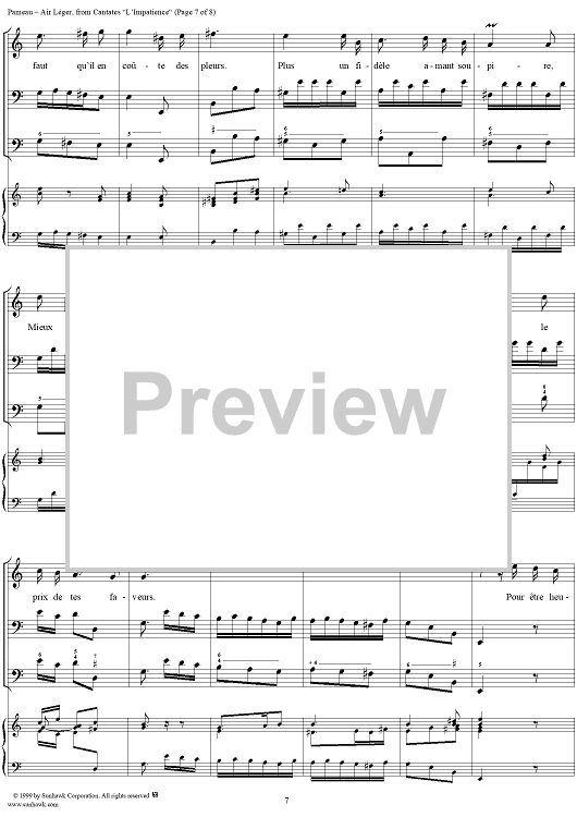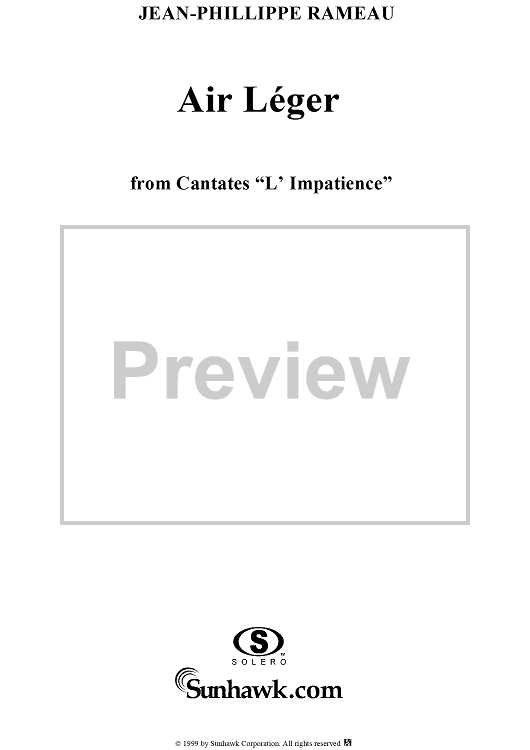 Digital Sheet Music for Cantates, L'Impatience, Air Leger by Jean-Philippe Rameau scored for Voice/Piano; id:255142