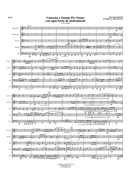 Digital Sheet Music for Canzona e Sonate Per Sonar con ogni Sorte de Instrumenti - Score by Giovanni Gabrieli, John Beyrent scored for Brass Quintet; id:315604