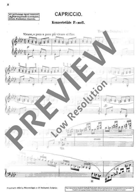 "Capriccio f minor" Sheet Music by Ernö von Dohnányi