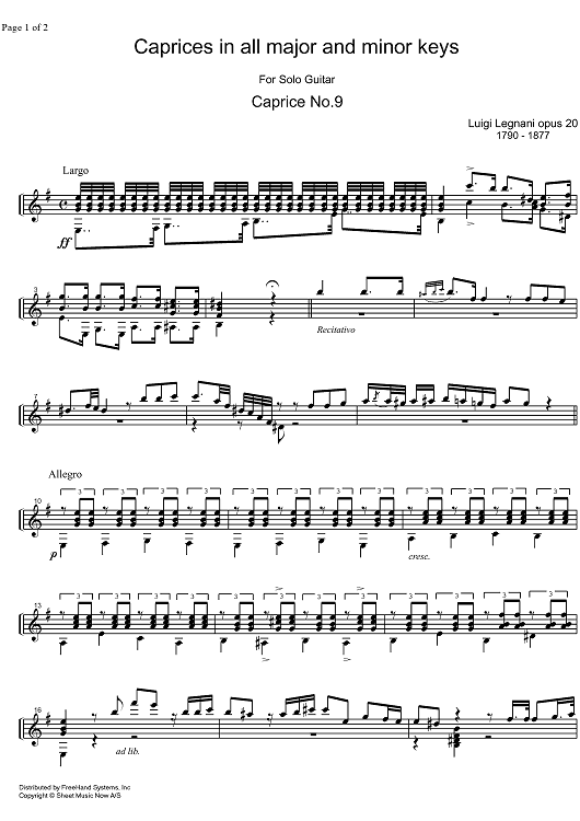 Digital Sheet Music for Caprice No. 9 by Luigi Legnani scored for Guitar; id:328006