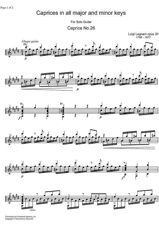 Digital Sheet Music for Caprice No.26 by Luigi Legnani scored for Guitar; id:321806