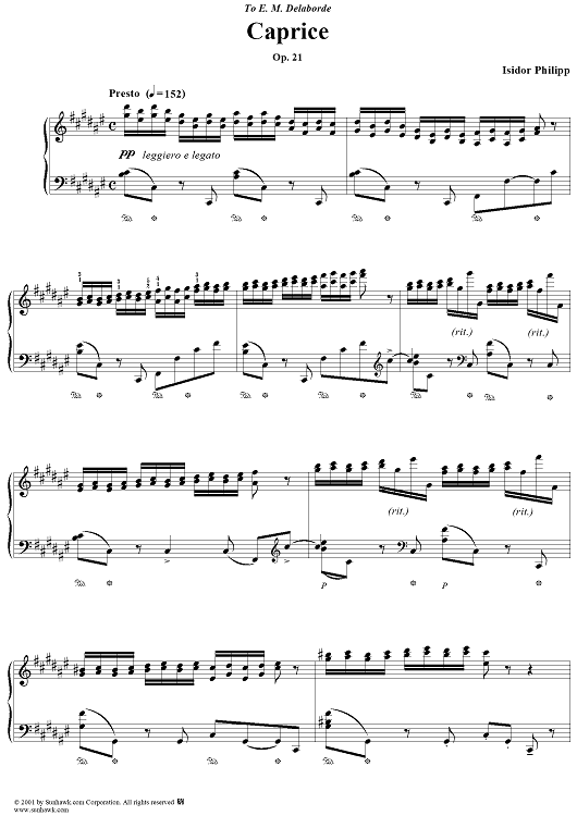 Digital Sheet Music for Caprice, op. 21 by Isidor Philipp scored for Piano Solo; id:254598