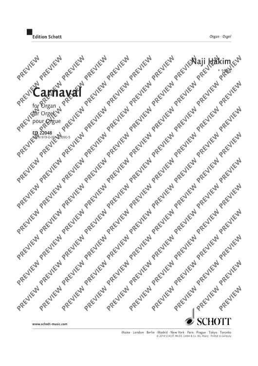 Digital Sheet Music for Carnaval by Naji Hakim scored for Organ; id:485812