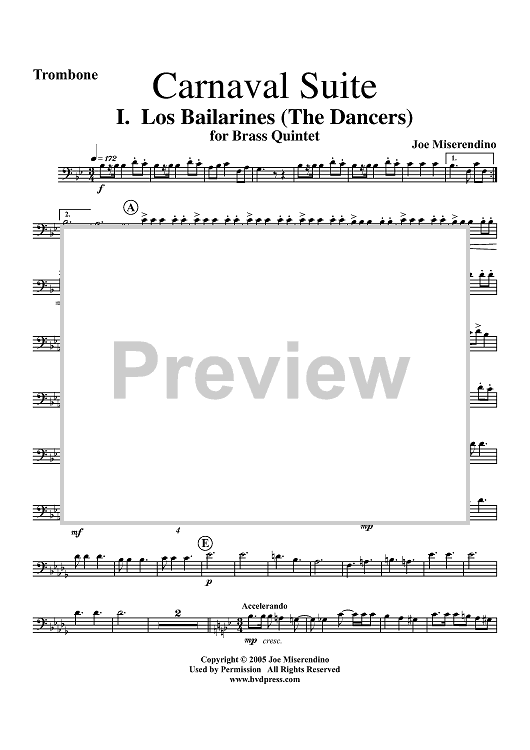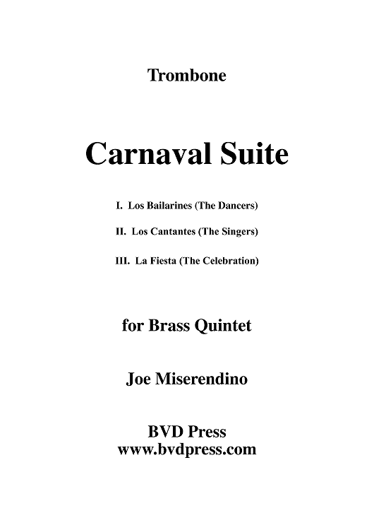Digital Sheet Music for Carnaval Suite - Trombone by Joe Miserendino scored for Brass Quintet; id:311775