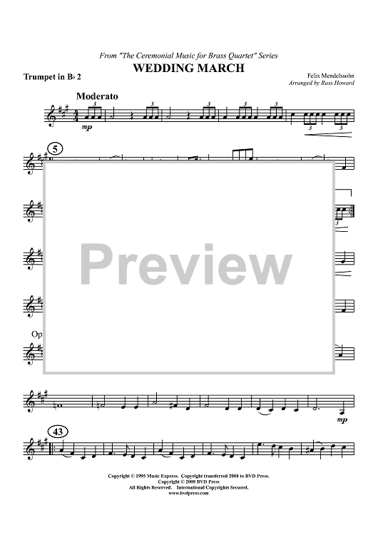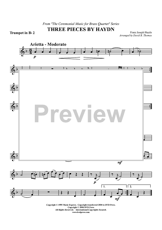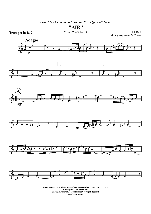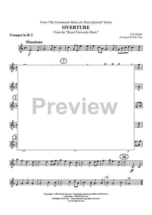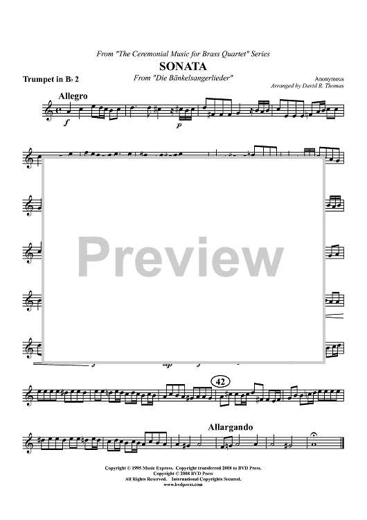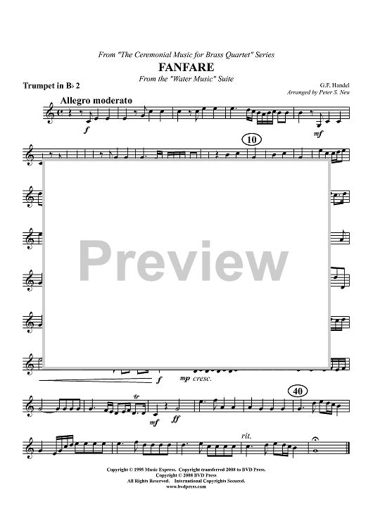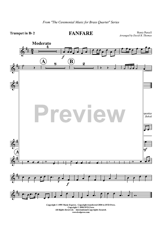 Digital Sheet Music for Ceremonial Music for Brass Quartet - Trumpet 2 by Various scored for Brass Quartet; id:428842