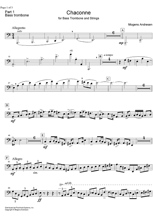 "Chaconne - Bass Trombone" Sheet Music by Mogens Andresen