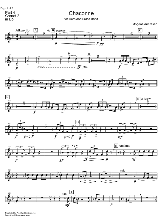 Digital Sheet Music for Chaconne - Cornet 2 by Mogens Andresen scored for Horn/Brass Band; id:328189