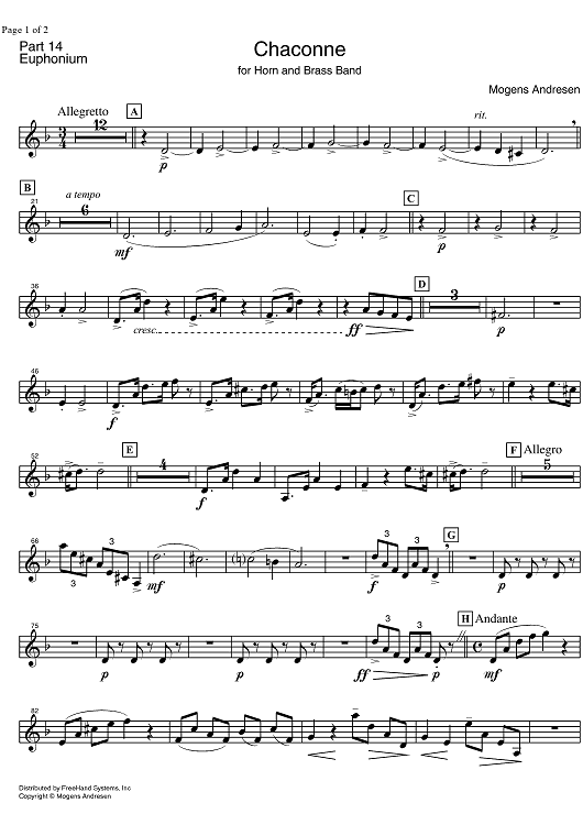 "Chaconne - Euphonium" Sheet Music by Mogens Andresen