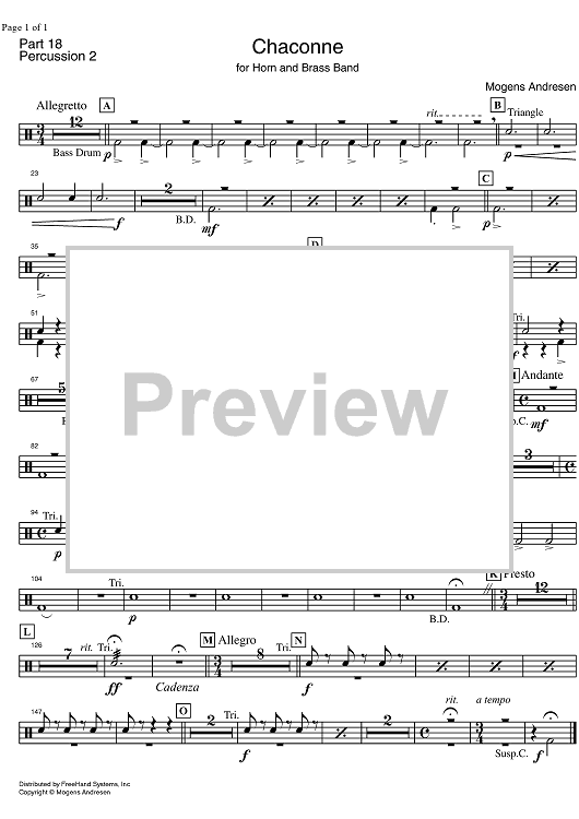 Digital Sheet Music for Chaconne - Percussion 2 by Mogens Andresen scored for Horn/Brass Band; id:328203