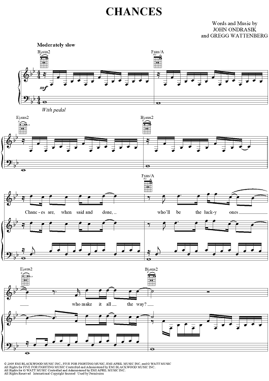 "Chances" Sheet Music by Five for Fighting