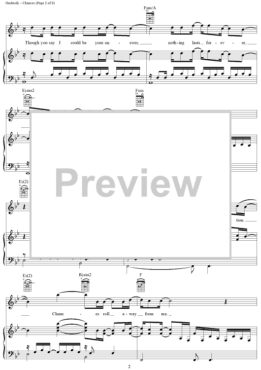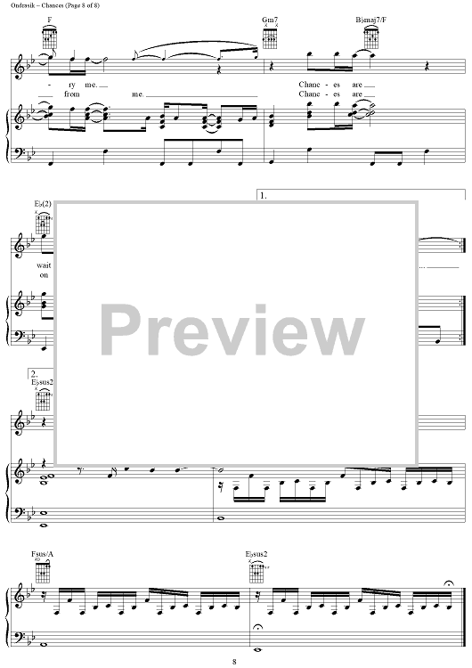 Digital Sheet Music for Chances by Five for Fighting scored for Piano/Vocal/Chords; id:406677