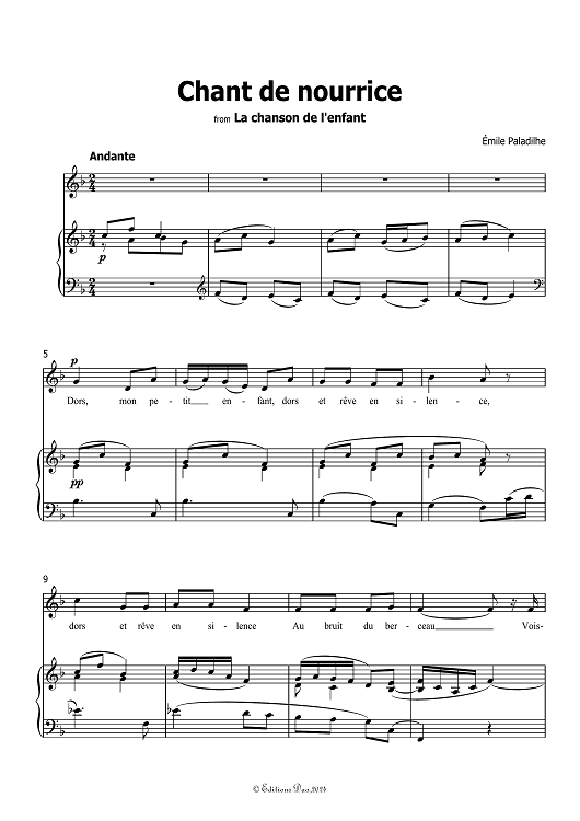 "Chant de nourrice, from La chanson de l'enfant" Sheet Music by Emile Paladilhe