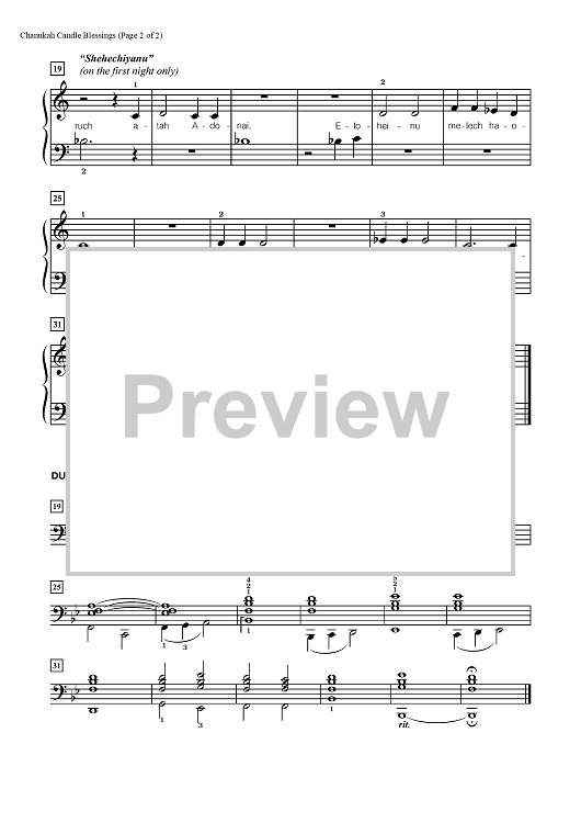 Digital Sheet Music for Chanukah Candle Blessings by Carol Matz, Traditional scored for Piano; id:461266
