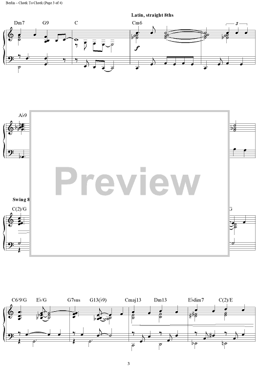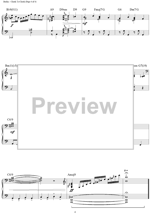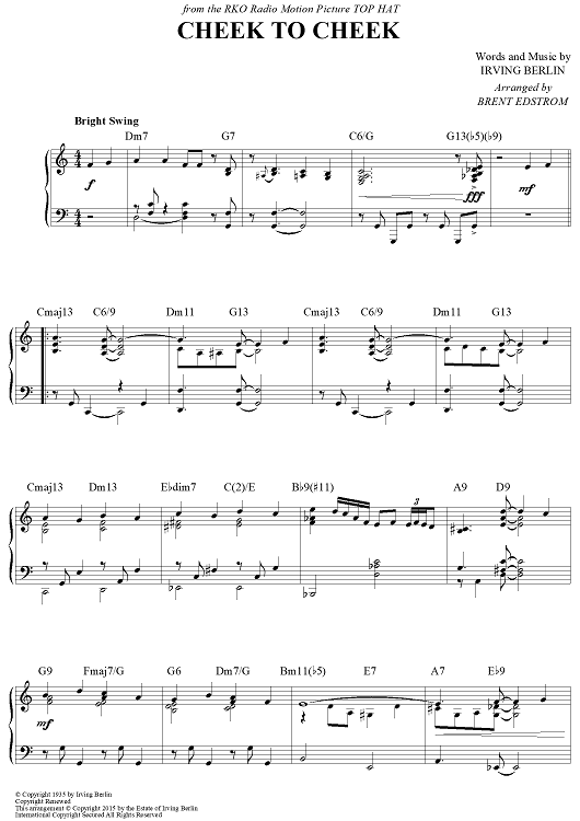 Digital Sheet Music for Cheek To Cheek by Irving Berlin, Brent Edstrom scored for Piano Solo; id:458096