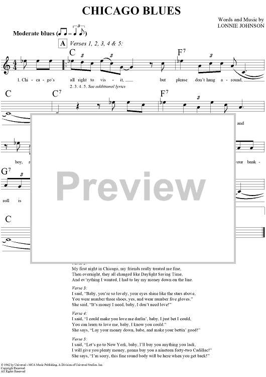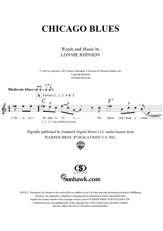 Digital Sheet Music for Chicago Blues by Lonnie Johnson scored for Lead Sheet; id:290841